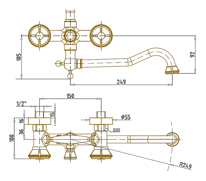 Стойка душевая Bronze de Luxe Royal 10121DDF верхний душ двойной цветок, излив длинный