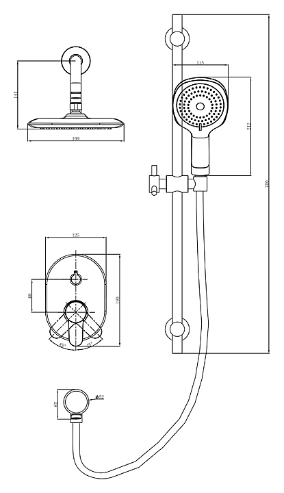 Душевой комплект D&K Rhein Marx DA1395601 встраиваемый, хром