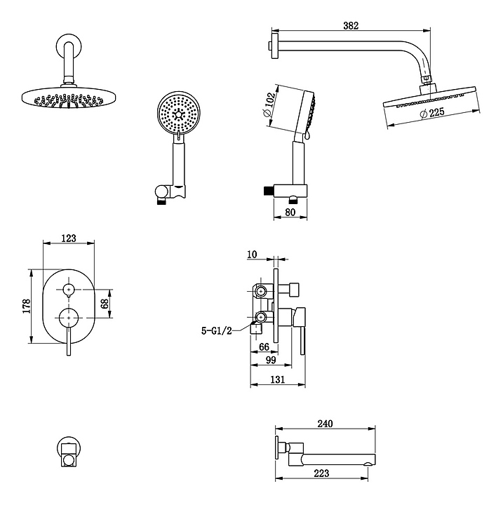 Комплект душевой Bronze de Luxe Scandi 14582W матовый белый