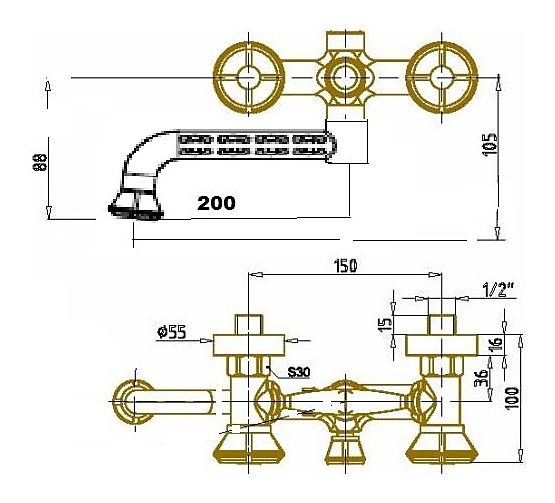 Стойка душевая Bronze de Luxe Royal 10121PF верхний душ цветок, излив резной