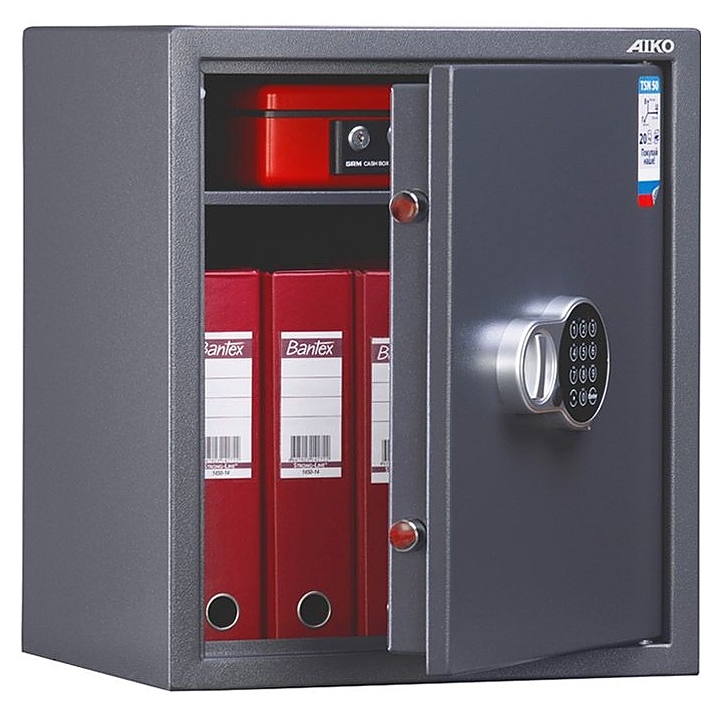 Сейф AIKO TSN.50 EL предназначен для хранения ценных вещей и личного огнестрельного оружия в гостиницах, отелях, офисах, квартирах и загородных домах. Модель оснащена электронным замком. Предусмотрена возможность анкерного крепления к полу и стене. В комплект поставки входит электронный замок PLS-1 с аварийным мастер-ключом. Особенности: