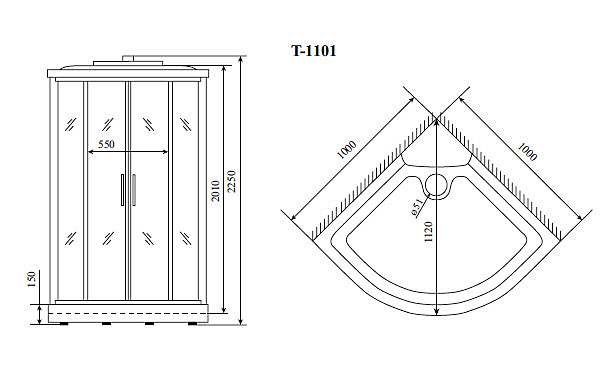 Душевая кабина TIMO Standart T-1101 P 100х100х220 см
