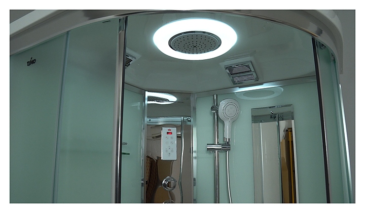 Душевая кабина TIMO Comfort T-8809 F предназначена для использования в ванных комнатах. Модель оснащена ручной лейкой, каскадным душем, точечным гидромассажем, четырёхрежимным термостатическим смесителем, сифоном с гидрозатвором, зеркалом, подсветкой и радио. Наличие полки обеспечивает максимальный комфорт при приеме душа, размещая на ней необходимые мыльные принадлежности. Раздвижная конструкция позволяет экономить пространство и оптимальна для небольших помещений. Изделие выполнено из акрила, устойчивого к механическим повреждениям, обладающего небольшим весом и повышенной шумоизоляцией, профиль - из алюминия, ручки - из нержавеющей стали. Особенности: