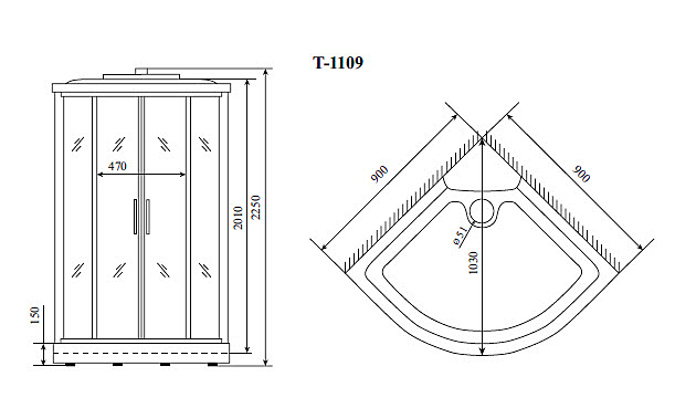 Душевая кабина TIMO Comfort T-8809 F P 90х90х220 см