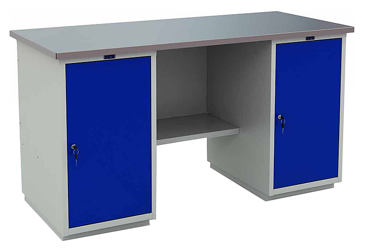 Слесарный верстак ПРОМЕТ Profi (№602) WT160.WD1/WD1.000 предназначен для оснащения рабочих мест на производственных участках, станциях технического обслуживания, участках сборки и комплектации, в загородных домах и технических помещениях. Модель оснащена 2 тумбами, по 2 съемные регулируемые полки в каждой. Столешница изготовлена из МДФ и покрыта оцинкованным листовым металлом, корпус и тумба - из металла. Комплектация: