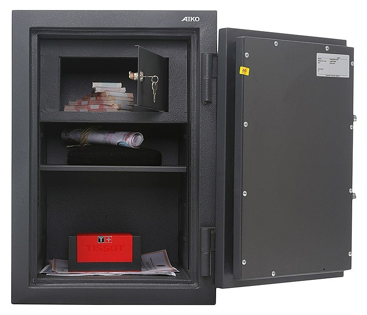 Сейф AIKO AMH-65T (132T) предназначен для хранения ценных вещей и личного огнестрельного оружия в гостиницах, отелях, офисах, квартирах и загородных домах. Модель оснащена трейзером и ключевым замком. Предусмотрена возможность анкерного крепления к полу. В комплект поставки входит ключевой замок BORDER. Особенности: