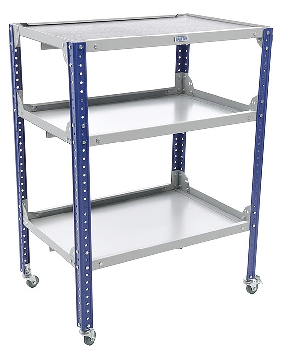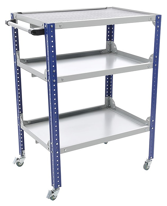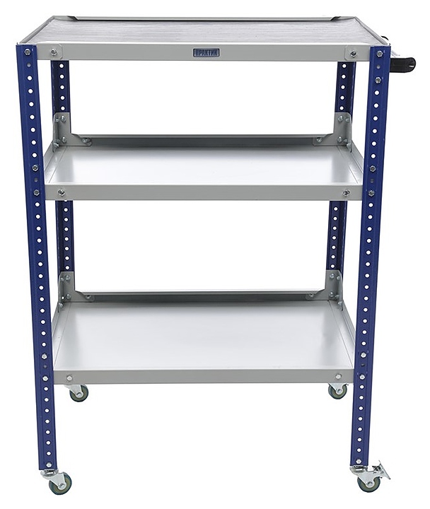 Тележка ПРОМЕТ WDS Garage предназначена для хранения инструментов и оснастки на производственных участках, станциях технического обслуживания, в мастерских и гаражах. Модель оснащена ручкой, 3 полками и колесами. Корпус изготовлен из металла, колеса - из резины. Особенности:
