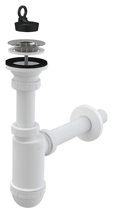 Сифон AlcaPlast A411 предназначен для установки с раковинами. Изделие выполнено из полипропилена, пробка - из ПВХ, сливная решетка - из нержавеющей стали, обрамление - из пластика. В комплект поставки входят корпус, пробка, сливная решетка и обрамление. Дополнительные характеристики: