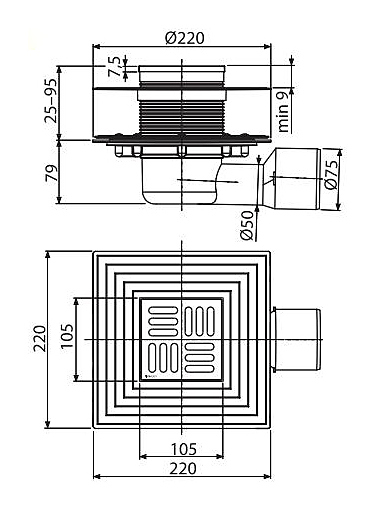 Душевой трап AlcaPlast APV3344 предназначен для ванных комнат и других помещений, где предполагается частый и регулярный сток воды в сливной трап, а также для открытых пространств, где может быть падение температуры ниже 0°C. Модель оснащена широким изоляционным воротником для удобного монтажа укладочной гидроизоляции пола. Решетка и воротник выполнены из нержавеющей стали, изделие - из полипропилена, устойчивого к механическим, химическим и термическим повреждениям. Комплектация: