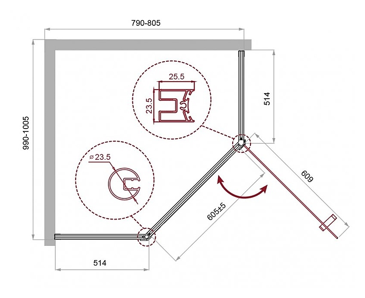 Уголок душевой BelBagno UNO-195-PH-1-100/80-C-Cr 100x80x195 см, прозрачное стекло
