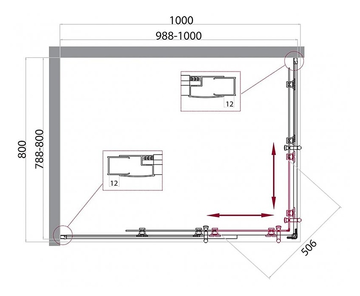 Уголок душевой BelBagno UNO-195-AH-2-100/80-P-Cr 100x80x195 см, рифлёное стекло