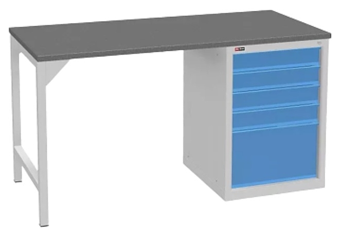 Слесарный верстак ДиКом ВЛ-К-150-06 предназначен для различных слесарных и сборочных работ в мастерских, гаражах, учебных заведениях и на производствах. Модель оснащена инструментальной тумбой с 5 выдвижными ящиками. Столешница изготовлена из фанеры толщиной 24 мм, покрытой оцинкованным железным листом (ЦФ). Особенности: