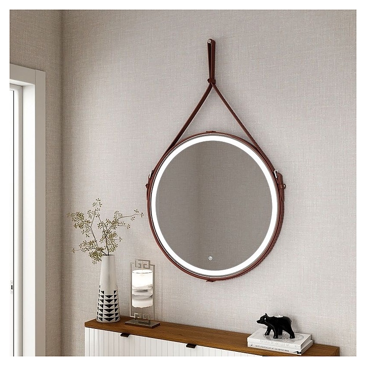 Зеркало Art&Max Milan AM-Mil-800-DS-F-Brown выполнено в современном стиле и отлично дополнит интерьер любой ванной комнаты. Благодаря подвесной конструкции модель не занимает много места, что позволяет экономить пространство в небольшой ванной комнате. Модель оснащена ремнем и встроенной светодиодной LED подсветкой с диммером. Ремень выполнен из натуральной кожи коричневого цвета. В комплект поставки входит крепеж и ремень. Особенности: