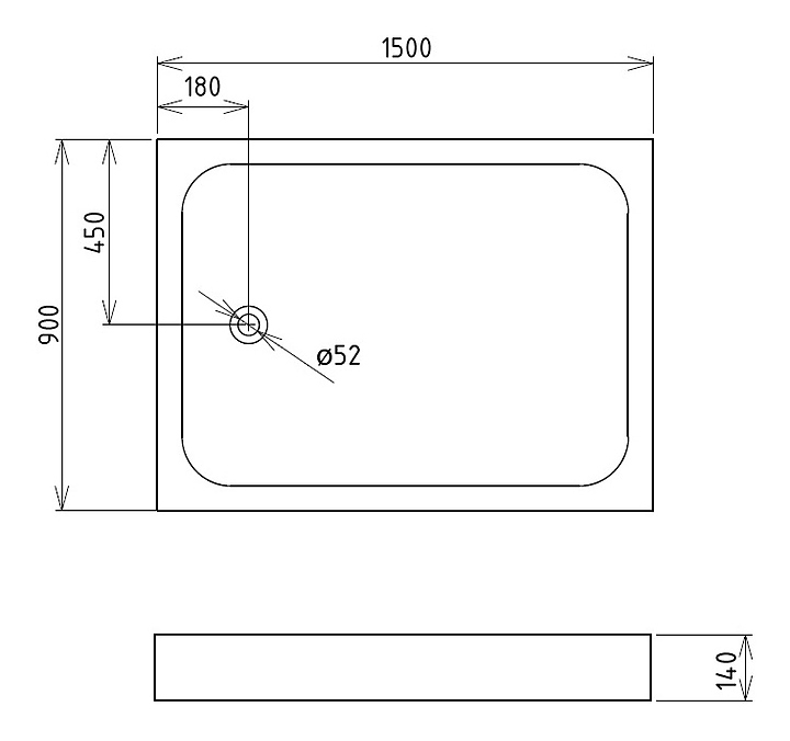 Поддон душевой Gemy ST16D 150х90х14 см, акрил