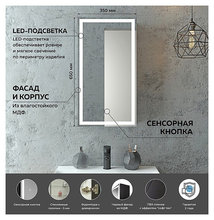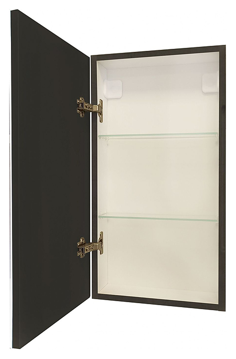 Зеркальный шкаф Art&Max AM-Tec-350-650-1D-L-DS-F-Nero выполнен в современном стиле и отлично дополнит интерьер любой ванной комнаты. Благодаря подвесной конструкции модель не занимает много места, что позволяет экономить пространство в небольшой ванной комнате. Модель оснащена одной распашной дверцей с фурнитурой с доводчиком для плавного закрывания, 2 стеклянными полочками, встроенной светодиодной LED подсветкой с диммером и сенсорным выключателем. Матовый корпус изготовлен из влагостойкого МДФ. В комплект поставки входит набор креплений. Особенности: