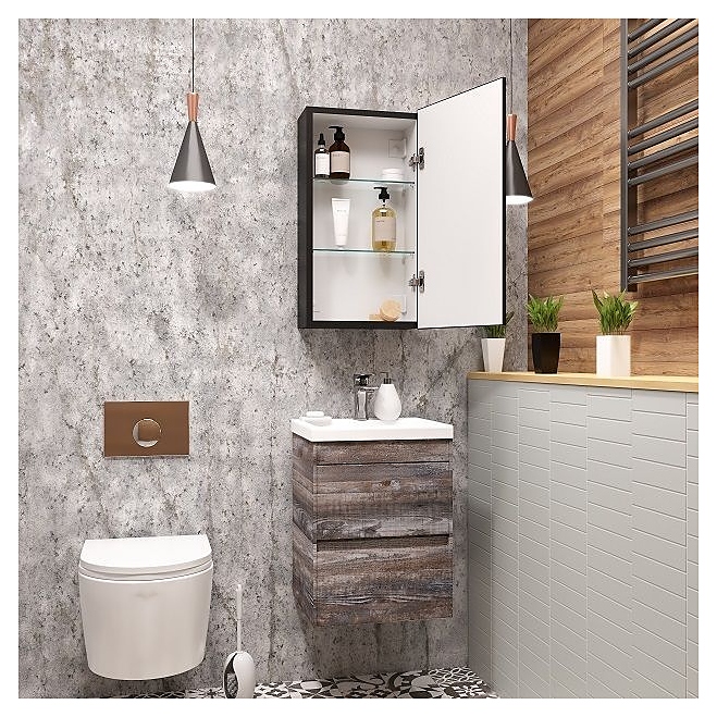 Зеркальный шкаф Art&MaxAM-Tec-350-650-1D-R-DS-F-Nero выполнен в современном стиле и отлично дополнит интерьер любой ванной комнаты. Благодаря подвесной конструкции модель не занимает много места, что позволяет экономить пространство в небольшой ванной комнате. Модель оснащена одной распашной дверцей с фурнитурой с доводчиком для плавного закрывания, 2 стеклянными полочками, встроенной светодиодной LED подсветкой с диммером и сенсорным выключателем. Матовый корпус изготовлен из влагостойкого МДФ. В комплект поставки входит набор креплений. Особенности: