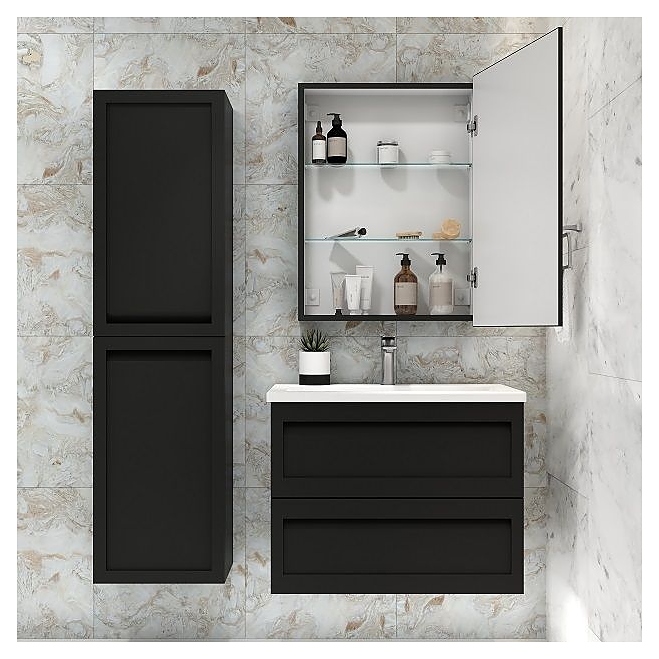 Зеркальный шкаф Art&Max AM-Tec-600-800-1D-DS-F-Nero выполнен в современном стиле и отлично дополнит интерьер любой ванной комнаты. Благодаря подвесной конструкции модель не занимает много места, что позволяет экономить пространство в небольшой ванной комнате. Модель оснащена одной распашной дверцей с фурнитурой с доводчиком для плавного закрывания, 2 стеклянными полочками, встроенной светодиодной LED подсветкой с диммером и сенсорным выключателем. Матовый корпус изготовлен из влагостойкого МДФ, ПВХ пленка с эффектом "Soft touch". В комплект поставки входит набор креплений. Особенности: