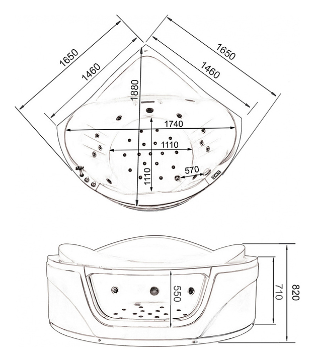 Ванна гидромассажная Gemy G9247 K 162х165 см, акрил