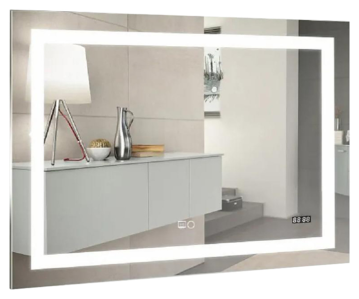 Зеркало Doratiz Адель 2711.906 дополнит интерьер ванной комнаты. Модель оснащена LED-подсветкой в форме ленты, сенсорным выключателем с функцией плавного диммирования, запоминанием последнего значения, электронными часами и обогревом зеркальной поверхности против запотевания. Короткие касания светящейся области включают/выключают подсветку, длительное касание меняет яркость свечения. Изделие выполнено из влагостойкого стекла с минимальными оптическими искажениями, корпус - из пластика. В комплект поставки входит крепление. Особенности: