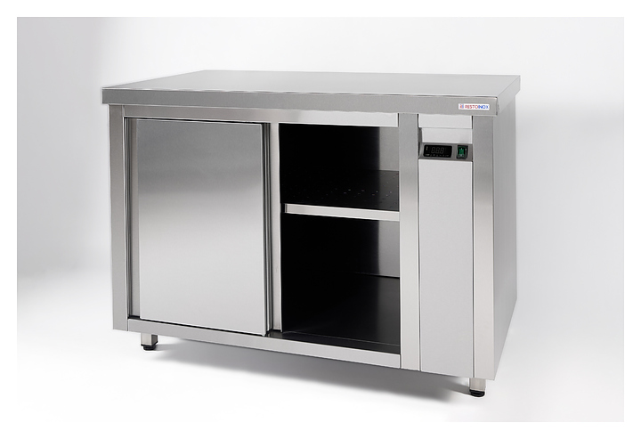 Тепловой стол Restoinox Т-СПСЗК-16/7 используется для подогрева и хранения в подогретом виде посуды, готовых блюд и напитков перед подачей, а также в качестве рабочей поверхности для приготовления на предприятиях общественного питания и торговли. Модель оснащена расположенным сбоку нагревательным отсеком с панелью управления, обогреваемой столешницей и сквозной камерой с дверьми-купе с двух сторон. Корпус, столешница и полка выполнены из высококачественной шлифованной нержавеющей стали AISI 430, опоры – из квадратного профиля стальной трубы AISI 430. Особенности: