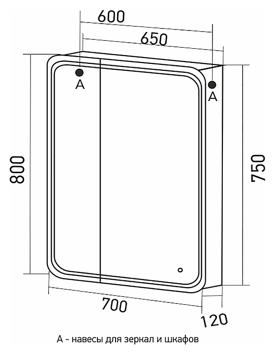Шкаф зеркальный Mixline Адриана 70х80 см с подсветкой и сенсорным выключателем, правый