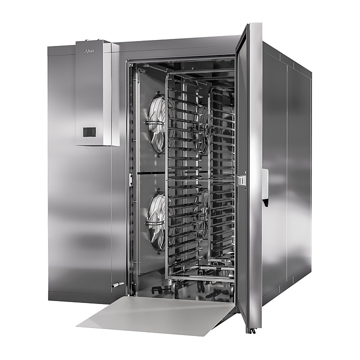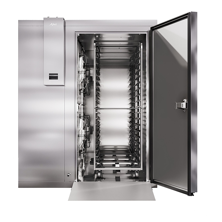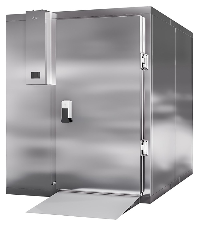 Камера шоковой заморозки Abat ШОКК-202 предназначена для быстрого охлаждения и замораживания различных пищевых продуктов и полуфабрикатов для дальнейшего их хранения на низкотемпературных складах предприятий общественного питания. Модель оснащена 2 воздухоохладителями с 2 вентиляторами каждый, навесной дверью с низкотемпературным уплотнителем, подогревом и двусторонним замком. Пандус и пол камеры выполнены из рифленого нержавеющего листа, стенки и потолок - сендвич-панели из высококачественной нержавеющей стали толщиной 80 мм. Особенности: