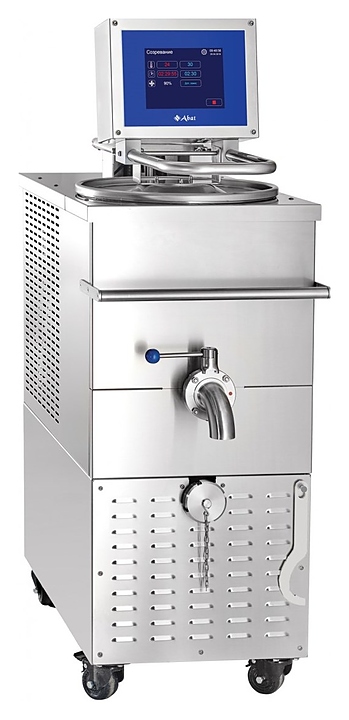 Ферментатор Abat ФТ-40П предназначен для приготовления и хранения различных жидких заквасок на предприятиях пищевой промышленности и общественного питания. Модель оснащена панелью управления с сенсорным экраном, позволяющим контролировать и настраивать конфигурацию циклов смешивания, ферментациии, консервации и колесами с ножным тормозом. Конструкция выполнена из высококачественной аустенитной нержавеющей стали AISI 304. Особенности: