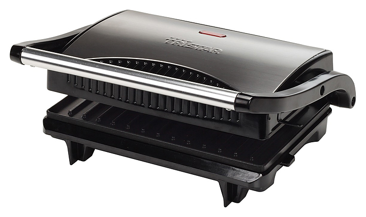 Гриль Tristar GR-2846 предназначен для жарки мяса, рыбы и овощей в частных домах, квартирах, отелях и офисах. Модель оснащена встроенными ручками и нескользящими ножками. Крышка корпуса выполнена из нержавеющей стали. Особенности: