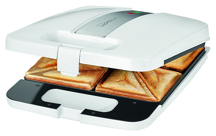 Сэндвичница Clatronic ST 3629 предназначена для приготовления горячих бутербродов, венских вафель, а также обжаривания различных продуктов в частных домах, квартирах, отелях и офисах. Модель оснащена жарочными пластинами с антипригарным покрытием, световыми индикаторами питания и нагрева и нескользящими ножками. Корпус выполнен из пластика со вставкой из нержавеющей стали. Особенности: