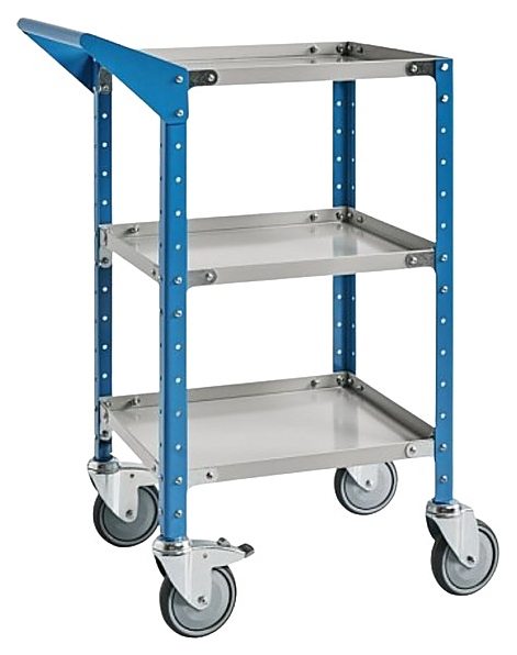 Грузовая тележка ДиКом ВЛТ-010 предназначена для перемещения оснастки, оборудования и инструментов в промышленных и торговых помещениях. Модель оснащена 3 полками и 4 поворотными колесами, 2 из которых с тормозом. Особенности: