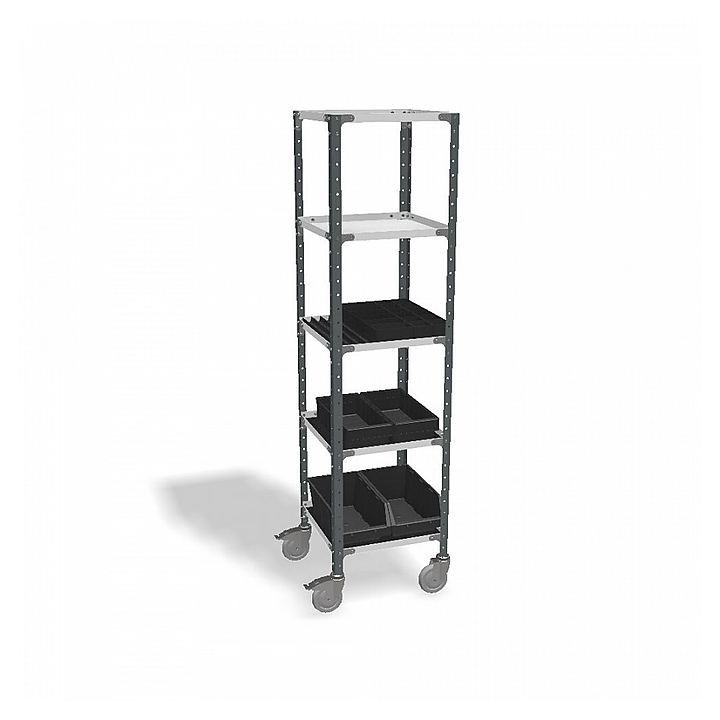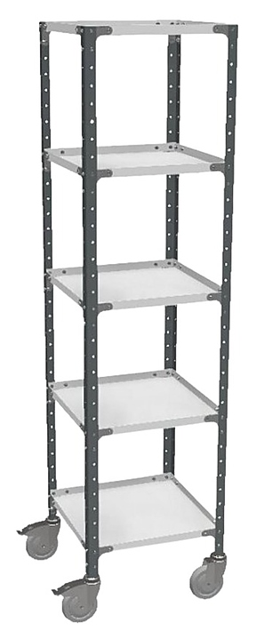 Грузовая тележка ДиКом ВЛТ-011 ESD предназначена для перемещения оснастки, оборудования и инструментов в ESD зонах. Модель оснащена 5 полками и 4 поворотными колесами, 2 из которых с тормозом. Особенности: