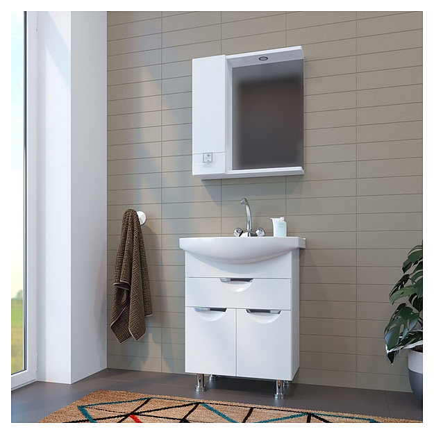 Зеркальный шкаф Mixline Квадро-65 выполнен в современном стиле и прекрасно дополнит интерьер любой ванной комнаты. За счет подвесной конструкции изделие позволяет экономить пространство в ванной комнате и облегчает уборку. Модель оснащена зеркалом, 1 открытой полкой, подсветкой с точечной светодиодной лампой, 1 распашной дверцей с металлической ручкой и 2 полками в отделении. Корпус изделия выполнен из ЛДСП, фасады - из МДФ с пленкой ПВХ. Комплект поставки: