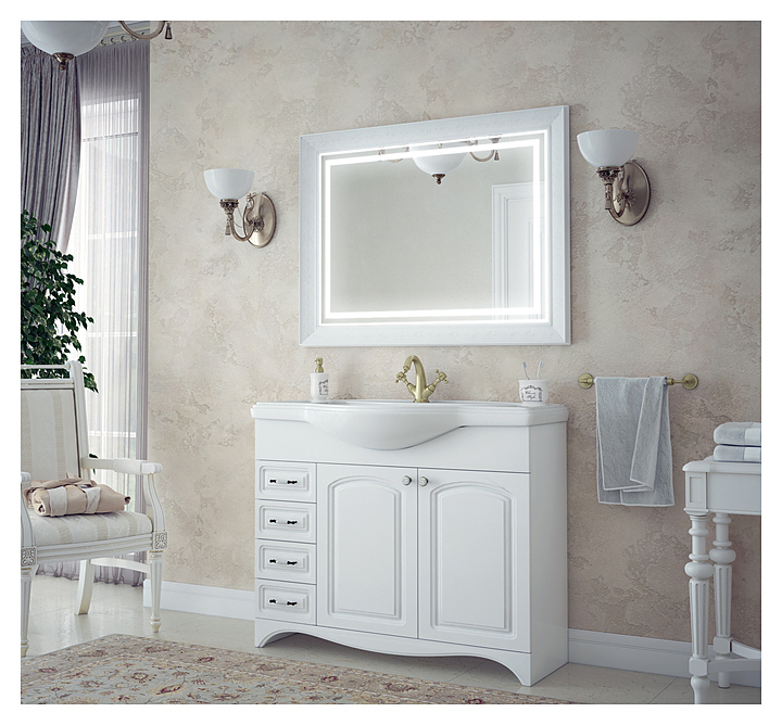 Зеркало-LED Corozo Классика 120 SD-00000815 выполнено в современном и лаконичном стиле и отлично дополнит интерьер любой ванной комнаты. Модель оснащена LED-подсветкой и сенсорным выключателем с регулировкой яркости. Благодаря подвесной конструкции модель не занимает много места, что позволяет экономить пространство в небольшой ванной комнате, а также облегчает уборку. Изделие выполнено в багетной раме, покрашенной в белую эмаль, сзади багетная рама и электрические компоненты закрыты пластиковым коробом, зеркало защищено противоосколочной пленкой. Особенности: