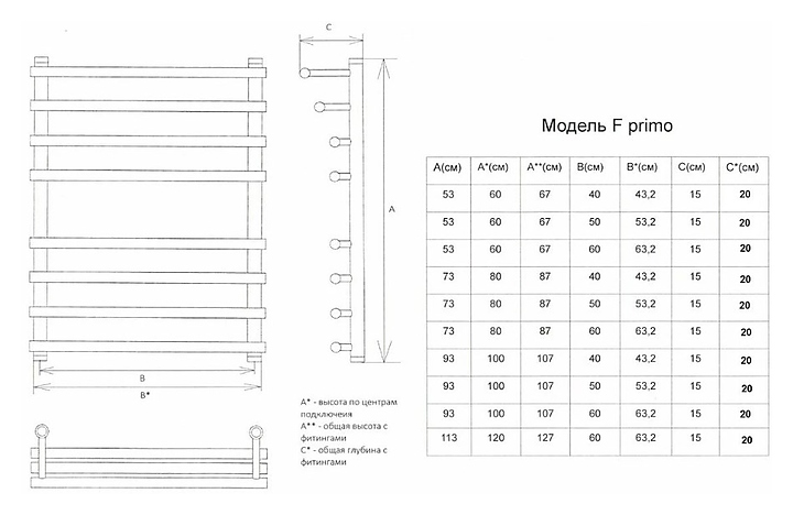 Полотенцесушитель водяной Двин 4627086032815 F primo 80/50 1"-3/4"-1/2" Универсальный К1, полированный