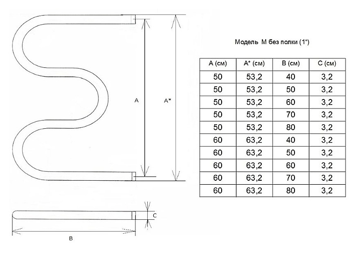Полотенцесушитель водяной Двин 4627086011278 M 60/50 1" К0, полированный