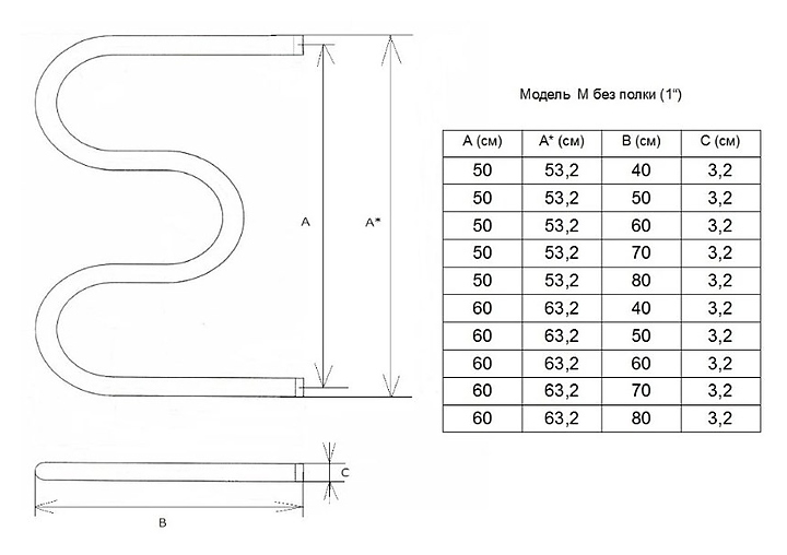 Полотенцесушитель водяной Двин 4627086011285 M 60/60 1" К0 без полки, полированный