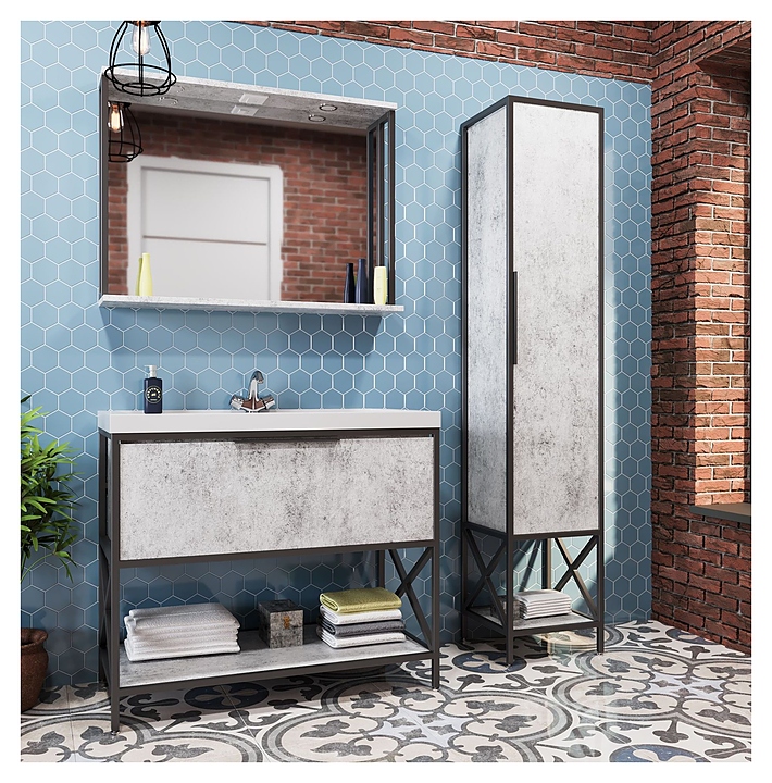 Зеркало Mixline Бруклин 100х70 см с подсветкой и полкой, бетон
