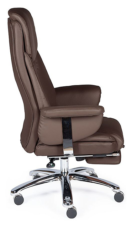 Кресло NORDEN Парламент предназначено для меблировки офисов и современных домашних кабинетов. Модель оснащена высокой спинкой с удобным подголовником, выдвижной опорой для ног и роликовыми колесами. Обивка спинки и сиденья выполнена из высококачественной экокожи, наполнение сиденья - из пенополиуретана, каркас - из металла, крестовина и газ-патрон - из хромированной стали, подлокотники - из экокожи с хромированными деталями. Особенности: