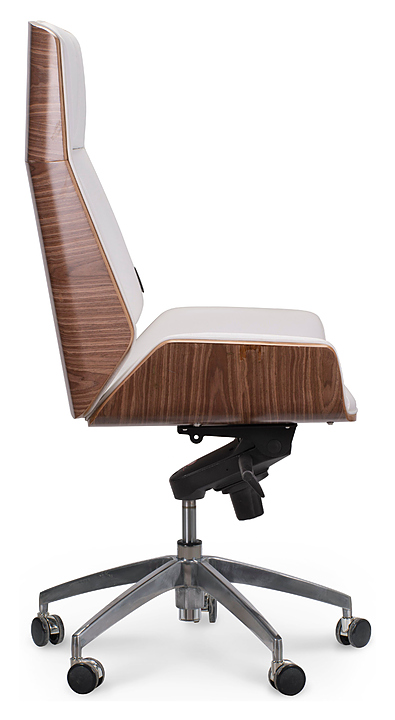 Кресло NORDEN Патио предназначено для меблировки офисов и современных домашних кабинетов. Модель оснащена высокой спинкой с удобным подголовником и роликовыми колесами. Обивка спинки и сиденья выполнена из кожи, наполнение сиденья - из пенополиуретана, каркас - из гнутой фанеры, крестовина - из полированного алюминия, газ-патрон - хромированный. Особенности: