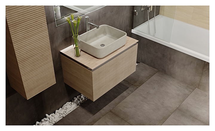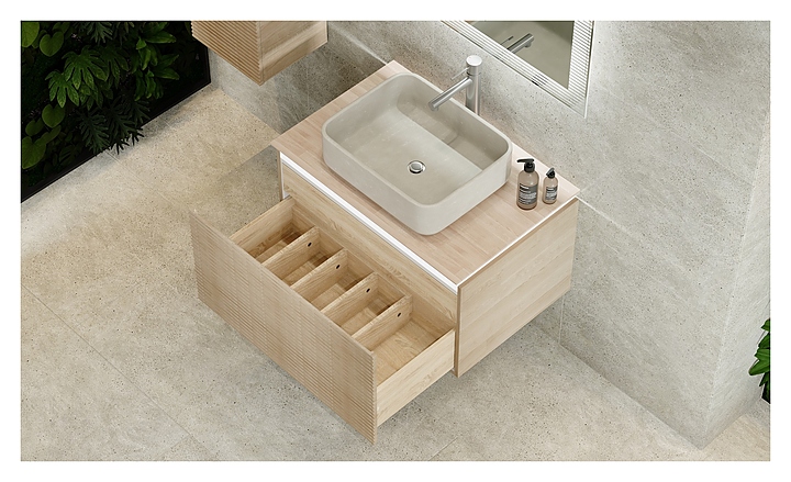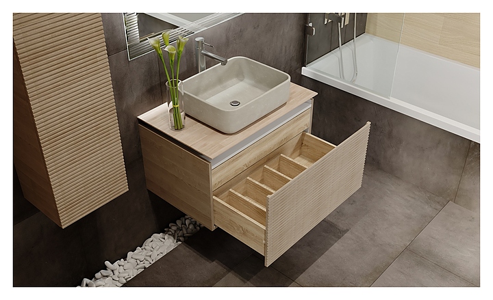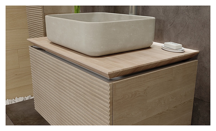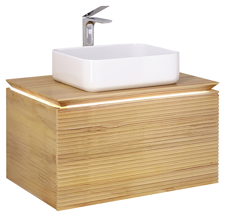 Тумба под раковину Jorno Karat 80 Kar.01.80/P/BuL дополнит интерьер ванной комнаты. Благодаря подвесной конструкции модель не занимает много места и облегчает уборку. Тумба оснащена подсветкой, выдвижным и скрытым ящиками с доводчиками. Фасад выполнен из МДФ в пленке ПВХ, столешница - из натурального массива бука. Дополнительные характеристики: