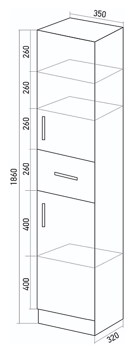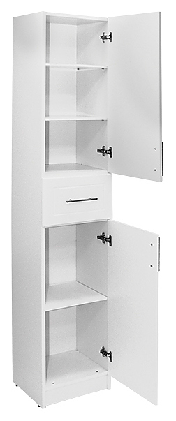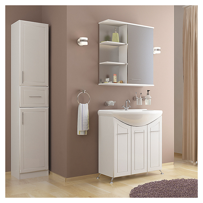 Шкаф-пенал Mixline Милора-35 легко впишется в интерьер любой ванной комнаты. Коллекция Милора выполнена в современном стиле. Модель оснащена 2 распашными дверцами, 2 отделениями с деревянными полками, на которых можно разместить все необходимые принадлежности, а также выдвижным ящиком с шариковыми направляющими полного выдвижения. Корпус выполнен из влагостойкой ЛДСП, фасад - из МДВ с пленкой ПВХ. Комплектация: