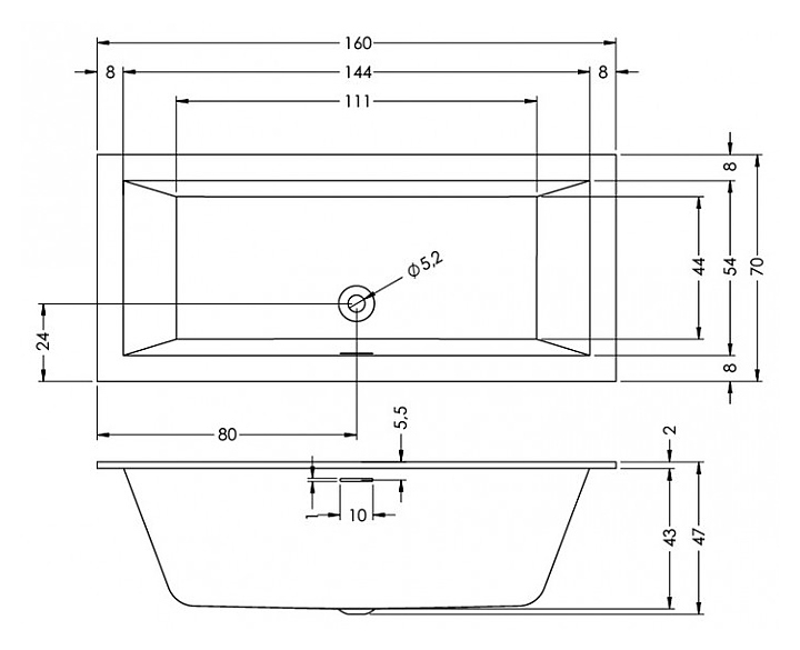 Ванна RIHO RETHING CUBIC FALL 160x70 см (заполнение через перелив), акрил
