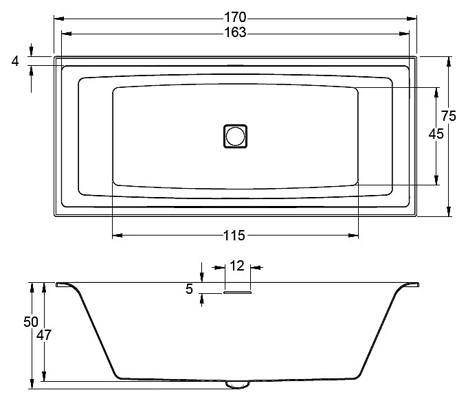 Ванна RIHO STILL SQUARE FALL 170x75 см (заполнение через перелив), акрил