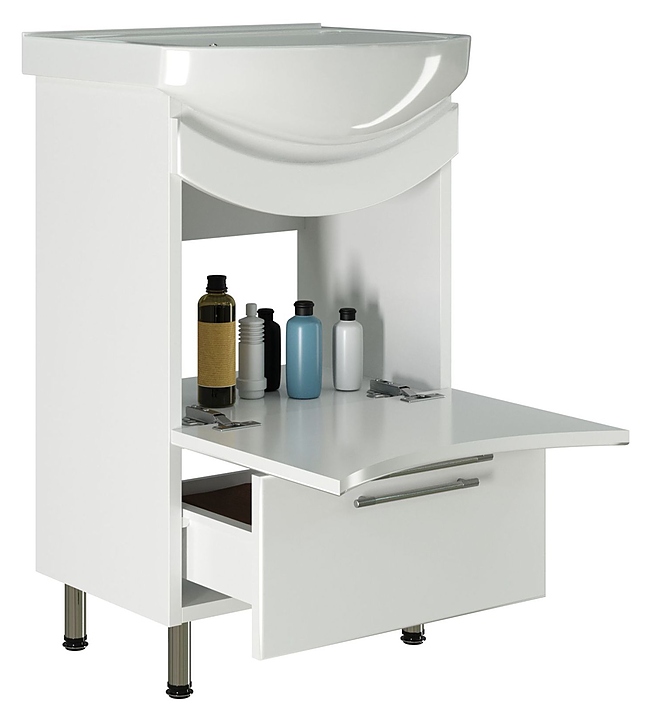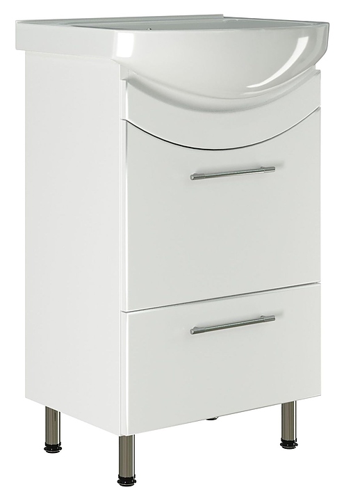 Тумба под раковину Mixline Радуга-52 идеально впишется в интерьер любой ванной комнаты. Напольная конструкция обеспечивает легкий монтаж и не требует специального ремонта в помещении. Модель оснащена откидной дверцей, отделением внутри для хранения ванных принадлежностей и выдвижным ящиком. Корпус выполнен из ЛДСП, фасад - из МДФ с пленкой ПВХ. Тумба может использоваться вместе с раковиной Mixline Альфана-52. Комплектация: