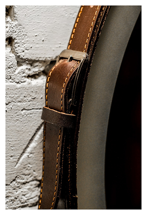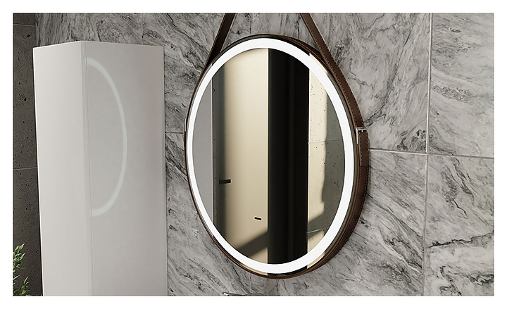 Зеркало Jorno Wood 50 Wood.02.50/ТК российского бренда дополнит интерьер ванной комнаты. За счет подвесной конструкции изделие не занимает много места, что позволяет экономить пространство. Модель оснащена диммируемой подсветкой и бесконтактным включателем. Зеркало декорировано ремнем из натуральной кожи с металлическими пряжками и держателем. Дополнительные характеристики: