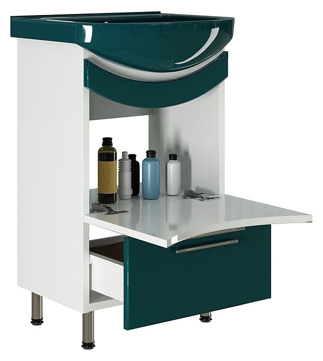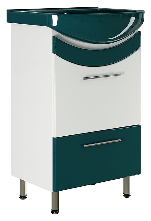 Тумба под раковину Mixline Радуга-52 идеально впишется в интерьер любой ванной комнаты. Напольная конструкция обеспечивает легкий монтаж и не требует специального ремонта в помещении. Модель оснащена откидной дверцей, отделением внутри для хранения ванных принадлежностей и выдвижным ящиком. Корпус выполнен из ЛДСП, фасад - из МДФ с пленкой ПВХ. Тумба может использоваться вместе с раковиной Mixline Альфана-52 зеленая. Комплектация: