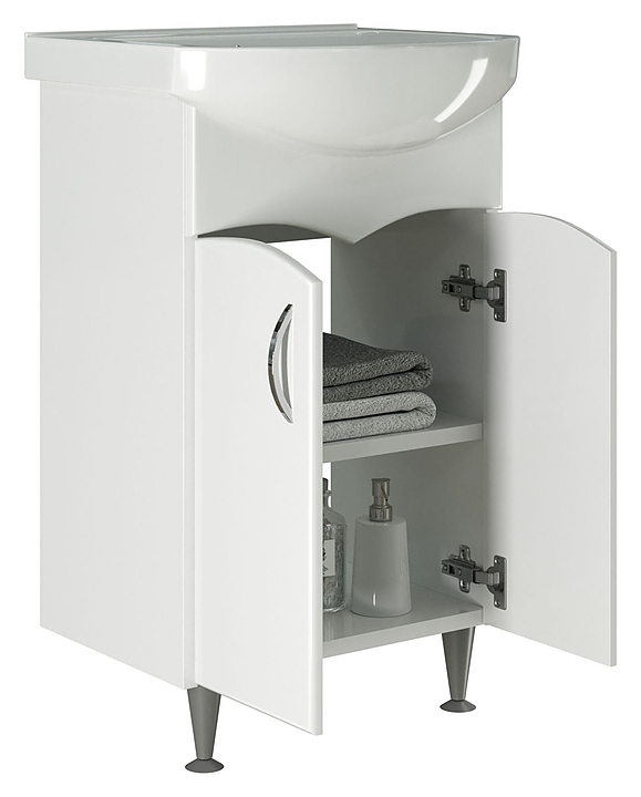 Тумба под раковину Mixline Формат-52 идеально впишется в интерьер любой ванной комнаты. Напольная конструкция обеспечивает легкий монтаж и не требует специального ремонта в помещении. Модель оснащена 2 распашными дверцами и 2 отделениями внутри для хранения ванных принадлежностей. Корпус выполнен из ЛДСП, фасад - из МДФ с пленкой ПВХ. Тумба может использоваться вместе с раковиной Mixline Альфана-52. Комплектация: