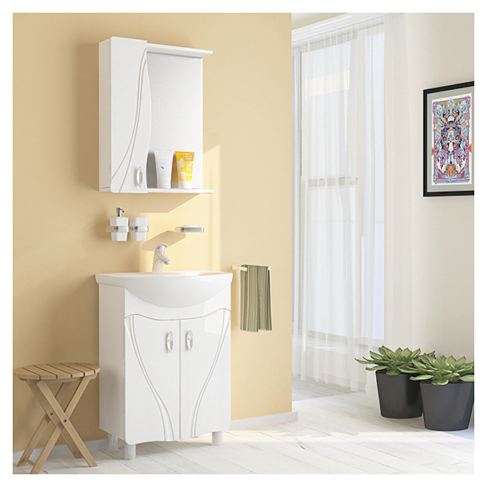 Тумба под раковину Mixline Лима-55 идеально впишется в интерьер любой ванной комнаты. Напольная конструкция обеспечивает легкий монтаж и не требует специального ремонта в помещении. Модель оснащена 2 распашными дверцами и 2 отделениями внутри для хранения ванных принадлежностей. Корпус выполнен из ЛДСП, фасад - из МДФ с пленкой ПВХ. Тумба может использоваться вместе с раковиной Mixline Элеганс-55. Комплектация: