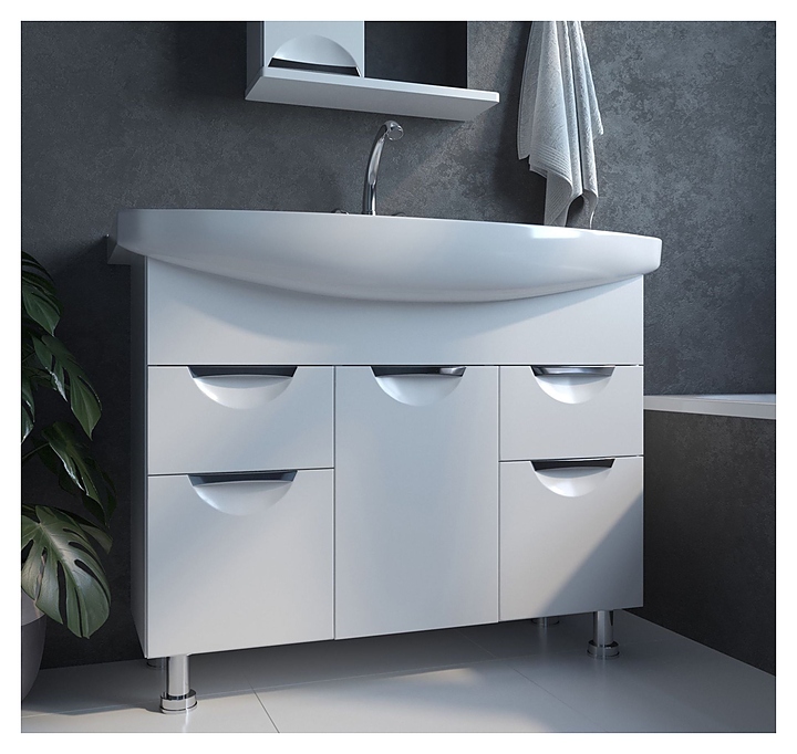 Тумба под раковину Mixline Этьен-105 идеально впишется в интерьер любой ванной комнаты. Напольная конструкция обеспечивает легкий монтаж и не требует специального ремонта в помещении. Модель оснащена 3 распашными дверцами, 3 отделениями внутри для хранения ванных принадлежностей, а также 2 ящиками полного выдвижения с шариковыми направляющими. Корпус выполнен из ЛДСП, фасад - из МДФ с пленкой ПВХ. Тумба может использоваться вместе с раковиной Mixline Элеганс-105. Комплектация: