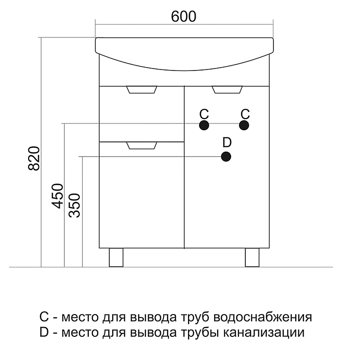 • Ширина вместе с раковиной: 650 мм